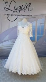 If you are looking for a show stopping gown, then Leonora is perfect for you! This fabulous dress has sleeves, perfect for Autumn and Winter weddings, or for brides who prefer to have a bit of cover. Elegant and sophisticated, this gorgeous ball gown will wow your groom and guests.