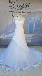 Olivia is a timeless and sophisticated wedding gown, perfect for a vintage inspired wedding. The strapless design makes it sexy but elegant as the sweeping train is made with gorgeous lace.